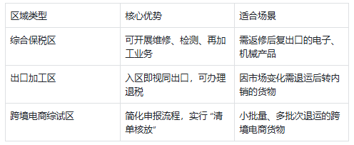例如某企业将一批需维修的显示屏退运至普通港口,因缺少资质证明被扣留,而同期另一企业通过综合保税区清关,3 天即完成验放。特殊监管区域为退运清关提供了更灵活的通道。